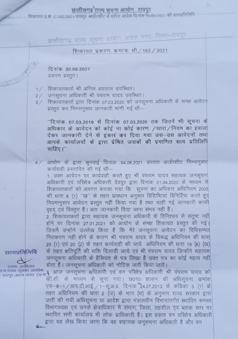 Posted By: Anil Agrawal 27-11-2021 वन परिक्षेत्र अधिकारी - देवपुर कार्यालय का किस्सा जानिए पार्ट - 1 सूचना का अधिकार की धारा 4 -1 - ख के तहत वन विभाग को चाहिए युक्त जानकारी को सार्वजनिक करें मगर वे जानबूझकर सार्वजनिक नहीं कर रहे हैं इसलिए हम जागरूक नागरिक होने का परिचय देते हुए वन विभाग के सभी दस्तावेजों को सार्वजनिक करेंगे ।